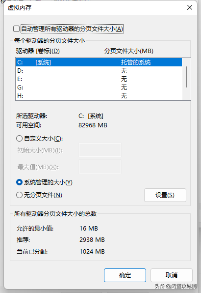 再选择系统管理的大小或者自定义大小,一般系统管理的大小即可再点击设置