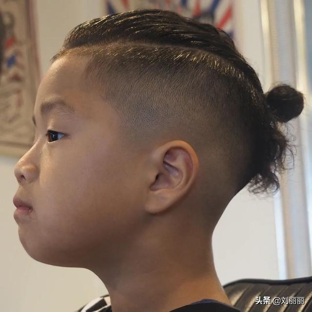 最后是一款艺术感十足的小男孩发型,周边推推头顶扎一个发髻,帅气有型不落伍。
