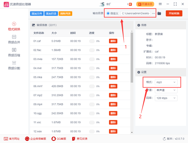 借助的工具软件:优速音频处理器
