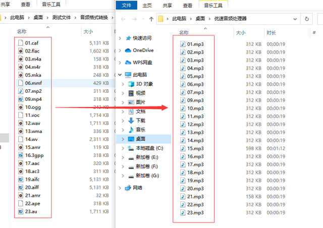 步骤五:通过我们对转换结果的查看,发现开始的音频文件此时已经全部转换成了mp3格式,转换成功了;