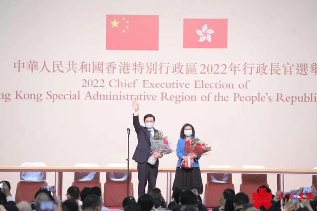 李家超高票当选第六任行政长官人选。(大公文汇全媒体资料图)香港特区完善选举制度后的首场行政长官选举于5月8日举行。1461名选举委员会委员当中,有1428人投票,投票率高达97.74%。李家超获得1416张支持票,得票率高达99.16%,在2022年第六届行政长官选举中高票当选。
