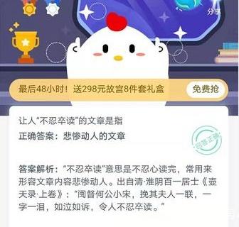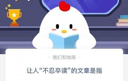 以上就是让人不忍卒读的文章是指的答案,“不忍卒读”指文章太惨烈无法在进行读下去的意思!了解更多蚂蚁庄园内容关注仓鼠手游网。
