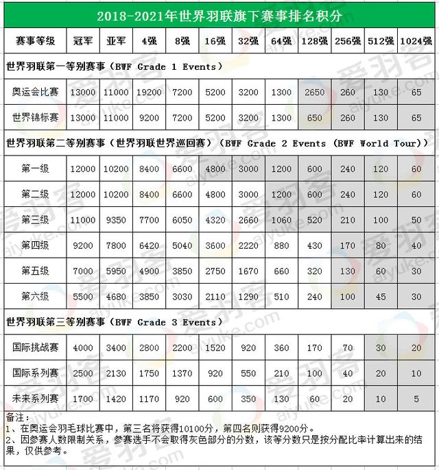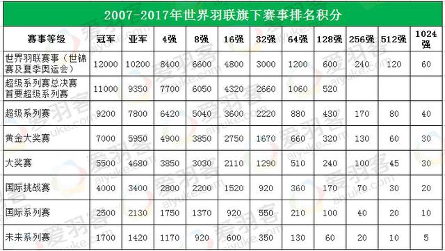 大家可以看看2007-2017年与2018-2021年世界羽联赛事积分有何不同。