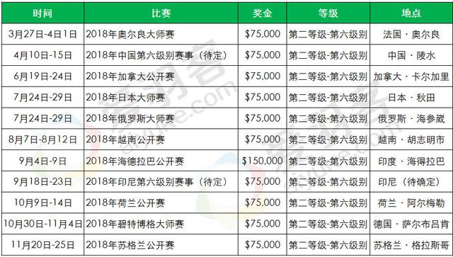 若在最近52周中参加11场及11场以上的规定赛事,总积分取10场最高积分之和。