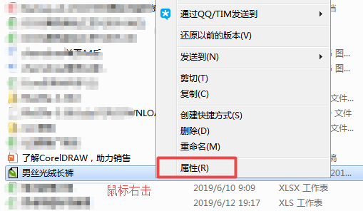 找到文件所在位置,右击弹出快捷选项,选择“属性”面板,