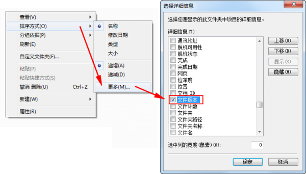 打开你的cdr文件夹-以“详细信息”排列图标-在文件夹空白处右键-排序方式-更多-勾选“文件版本”。