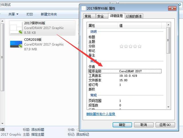 当用高版本保存一个低版本类型时,不影响它的显示,例:我用CorelDRAW 2017保存一个X6的版本,而它的信息显示的依然是CorelDRAW 2017。