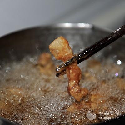 11、将肉一块一块的放入炸锅中