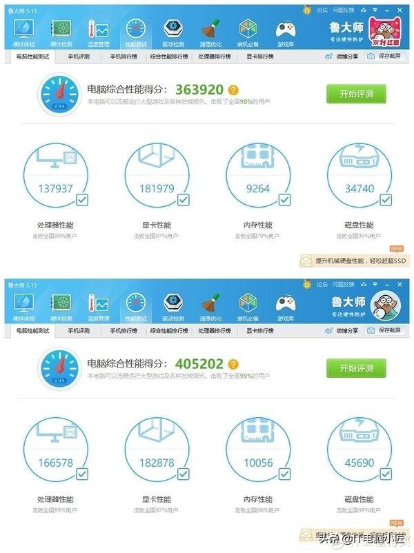 另外,鲁大师的跑分,自己娱乐一下就好了,不信,你试试以下情况:1、同一台电脑,用不同版本的鲁大师跑一下得分对比一下。