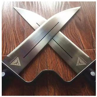 「斩刀」,微少变化、不需距离、身手不动的情况之下,突然斩向对手,可以开膛;就算是高手以身避刀,但一样逃不出死亡之门,刀会随即穿喉而至。「斩」与「拍刀」相伴相随,如不杀对手只碰他手中兵器,力量拍打使武器落地让对手精神蹦溃而结束战斗。这种方法,对于对手握棍、斩马刀、大关刀、大扒(三叉)等重兵器,尤其有效。重兵器最大不利是需要双手紧握。