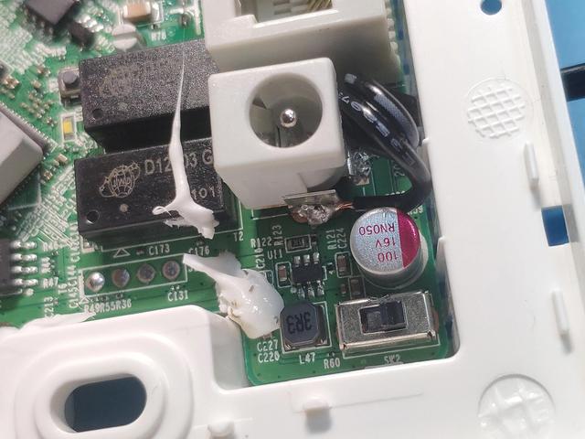 从原有的DC供电口引2根线,用于连接到有线电视线