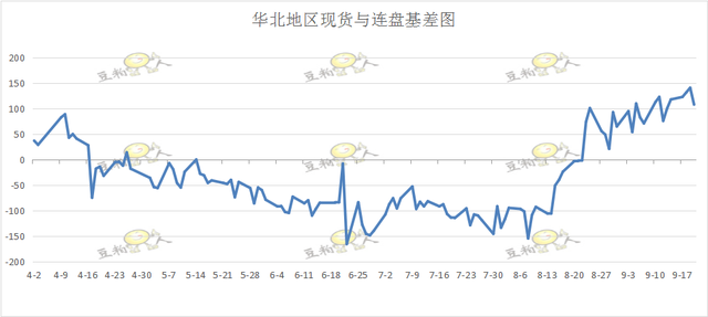 图中可以看出,华北地区现货基差从4月上旬开始一路缩小,负基差维持将近4个月的时间,8月中旬以后快速上涨,短短半月的时间内基差尽数回归,速度之快,令市场参与者始料未及(瞠目结舌)。