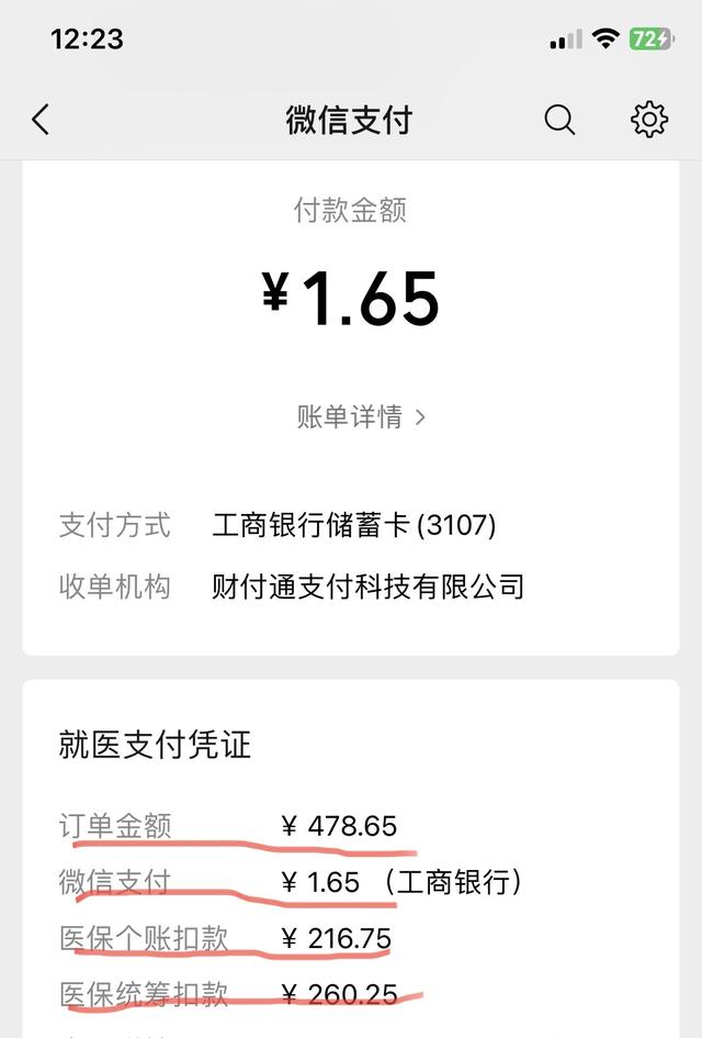 2、医保统筹账户扣款260.25元;