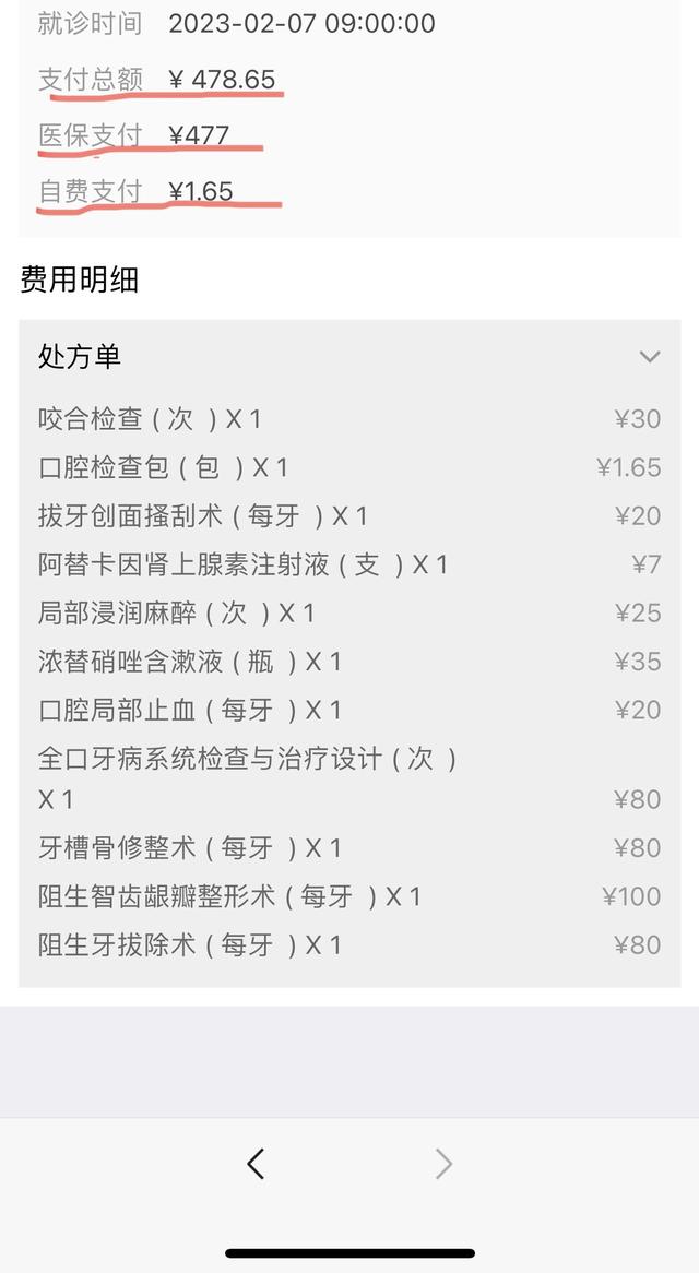 二、拔牙手术费花费478.65元