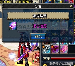 古老的装备合成器:使用后,可以将两件封装的稀有装备进行合成,并获得全新的装备。(无法合成神器装备中的防具)。合出稀有装备的适用Lv,会以原有两个装备的平均Lv为基准,最高可增加Lv10。称号、锁定状态下或者蕴含有异界气息的装备无法进行合成。这个仪器的生产年代似乎有些久远,现在看来已经十分破旧了。