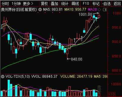 中新网客户端6月27日电(谢艺观)6月27日,贵州茅台股价首次突破1000元大关,创历史新高,总市值达1.26万亿元,A股时隔27年再现千元股。消息面上,6月28日贵州茅台将进行高达182.64亿元的现金红利发放,每股现金红利14.539元,6月27日为股权登记日。截至发稿时,贵州茅台股价盘中最高报1001元。