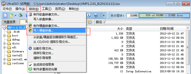 2、然后点击 『启动』→『写入硬盘映像』,然后点击『写入』,其他默认。完成后关闭刻录软件,把U盘拔出即可。