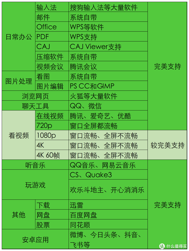 将Deepin应用情况做一个总结,是下面这个表。