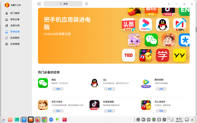 在应用商店里可以直接安装各类应用,可以看到常见的app和一些游戏都可以安装。可以简单直接点击安装,也可以通过终端命令行来进行安装,通过命令安装可以看到安装过程。