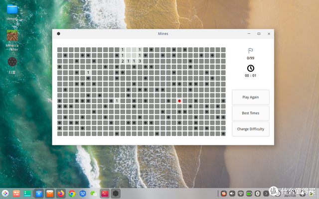这是Deepin下一个经典扫雷游戏的效果。Deepin下也有很多小游戏,还有我的世界这类游戏,但是因为显而易见的原因,登录时间太长,根据网友反馈,Deepin玩我的世界是没有问题的。通过安卓应用,一样可以玩如消消乐、斗地主之类的游戏,后面我会贴图介绍。