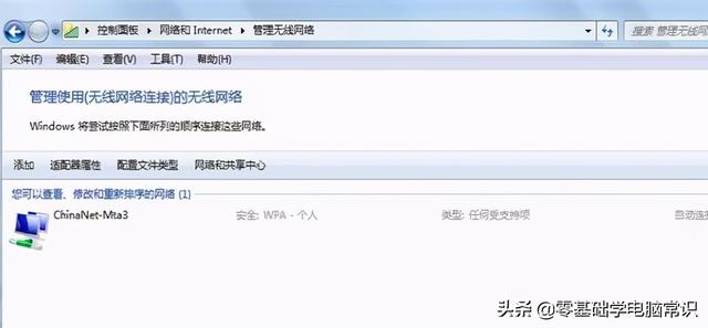然后点击“管理无线网络”