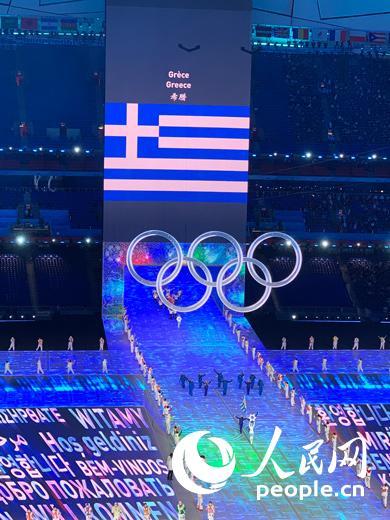 北京冬奥会开幕式,希腊代表团入场。人民网记者 胡雪蓉摄