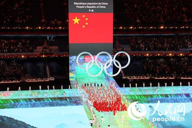 北京冬奥会开幕式,中国代表团入场。 人民网记者 胡雪蓉摄