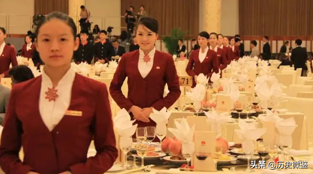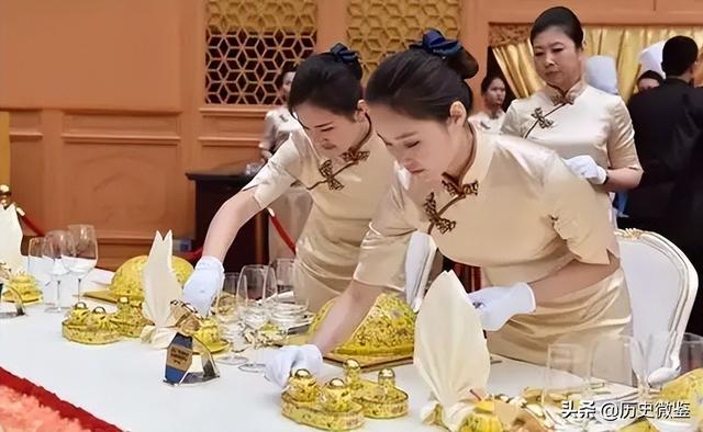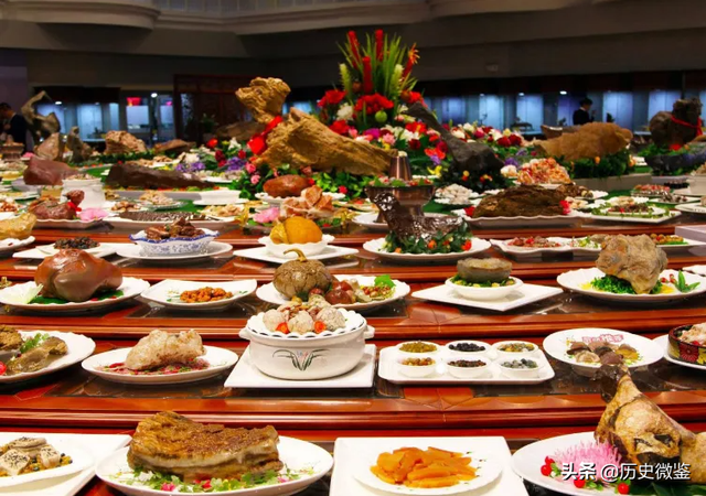 这么多人参加的宴会,光服务人员就需要1200多人。从饮食采购、加工烹制、菜品摆放、上菜上酒等等,都需要大量的人手。
