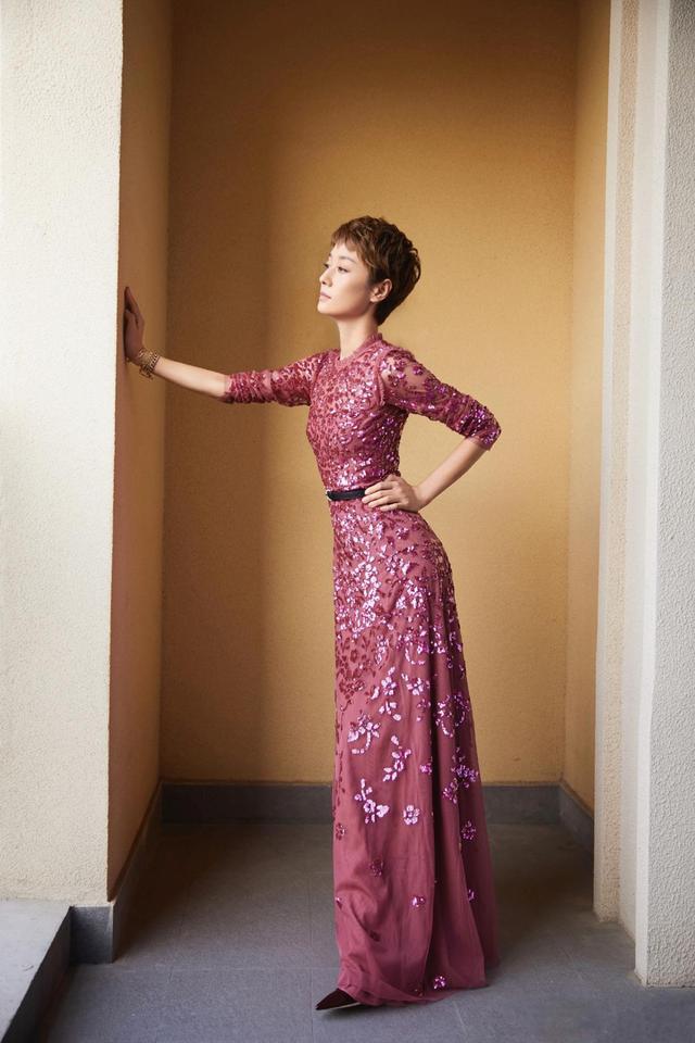 深粉色的纱裙是修身的版型,能够很好地勾勒出马伊琍的身材曲线,但是深粉色这种比较温柔的颜色,还是被马伊琍穿出了一种干练感,上面点缀着很多立体的亮片花朵,给人一种很有意境的美感,黑色的腰带是裙子的点睛之笔,能够凸显出腰线位置,也给人更强烈的视觉冲击力