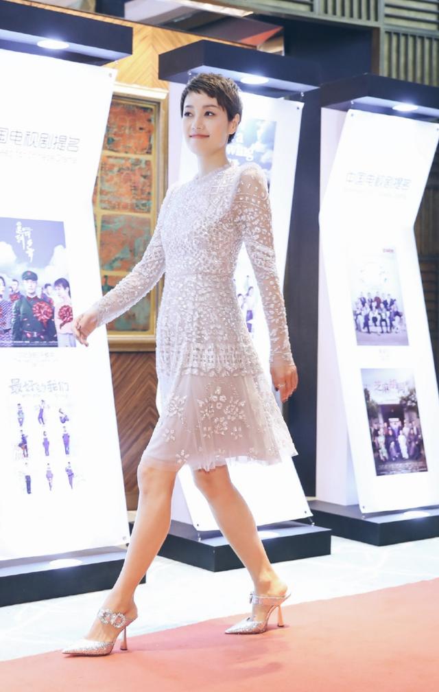 马伊琍的这件亮片连衣裙虽然看似简约,但是有满满的细节在里面,亮片均匀布满裙身,虽然光泽感很强,但是并不会显得过于张扬,领口与肩膀的蕾丝设计十分有女人味,裙子还是纱裙,就显得非常有仙气了,裙摆在走路时看起来也十分飘逸,狗啃式的刘海还增加了小女人的俏皮感呢