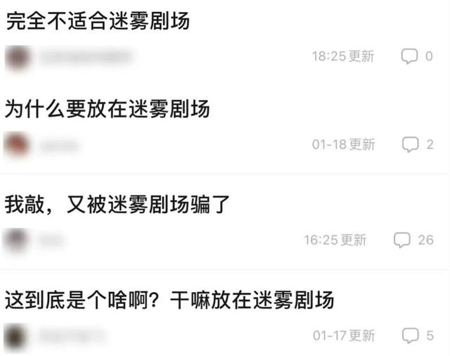 豆瓣讨论区对该剧放在迷雾剧场的质疑