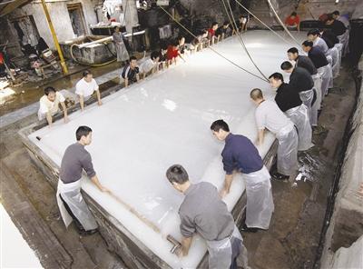 汉族优秀的民族传统工艺之一。对宣纸的记载最早见于《历代名画记》、《新唐书》等。起于唐代,历代相沿。宣纸的原产地是安徽省的泾县。此外,泾县附近的宣城、太平等地也生产这种纸。到宋代时期,徽州、池州、宣州等地的造纸业逐渐转移集中于泾县。当时这些地区均属宣州府管辖,所以这里生产的纸被称为“宣纸”,也有人称泾县纸。由于宣纸有易于保存,经久不脆,不会褪色等特点,故有“纸寿千年”之誉。