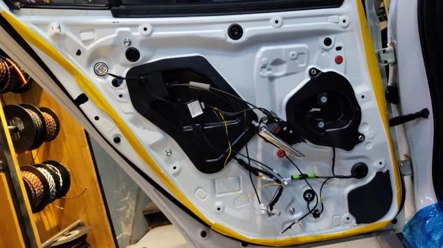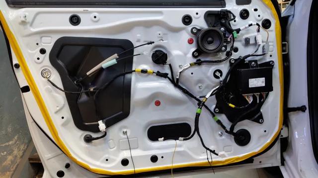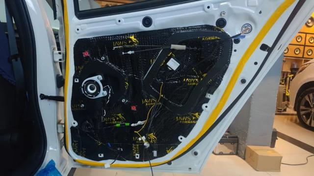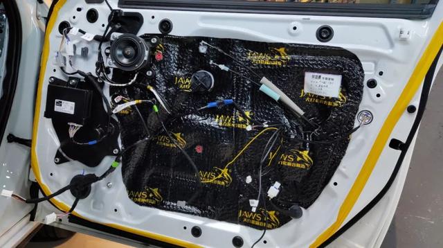 改装喇叭前,先进行隔音,车门进行双层隔音,不但可减少门内饰钣金产生的杂乱噪音。有效改善音响播放时引起的不规则震动噪音,更能使车门变得更加厚实,关车门的声音从此变得更加沉了!最关键的是,隔音之后使得车门更像一个箱体,能有效提升音响效果。