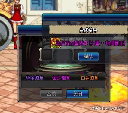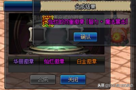 几套时装下来,分解不出需要的徽章只好合出来了,又是一阵徽章合成,最后自己需要的那个双重徽章总算合出来了。当他说出自己分解好几套时装就为了一个徽章的时候,小伙伴们都惊呆了。看着人家花钱如流水,不服都不行,最后我们也只能扔出一句:大佬真有钱!