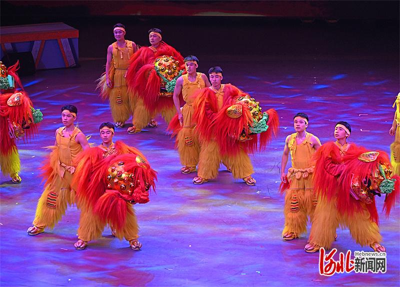 9月28日晚,第二十届中国吴桥国际杂技艺术节《梦·吴桥》演出在吴桥东方杂技城精彩上演。图为《祥狮跃九州》节目。河北日报记者 张昊摄