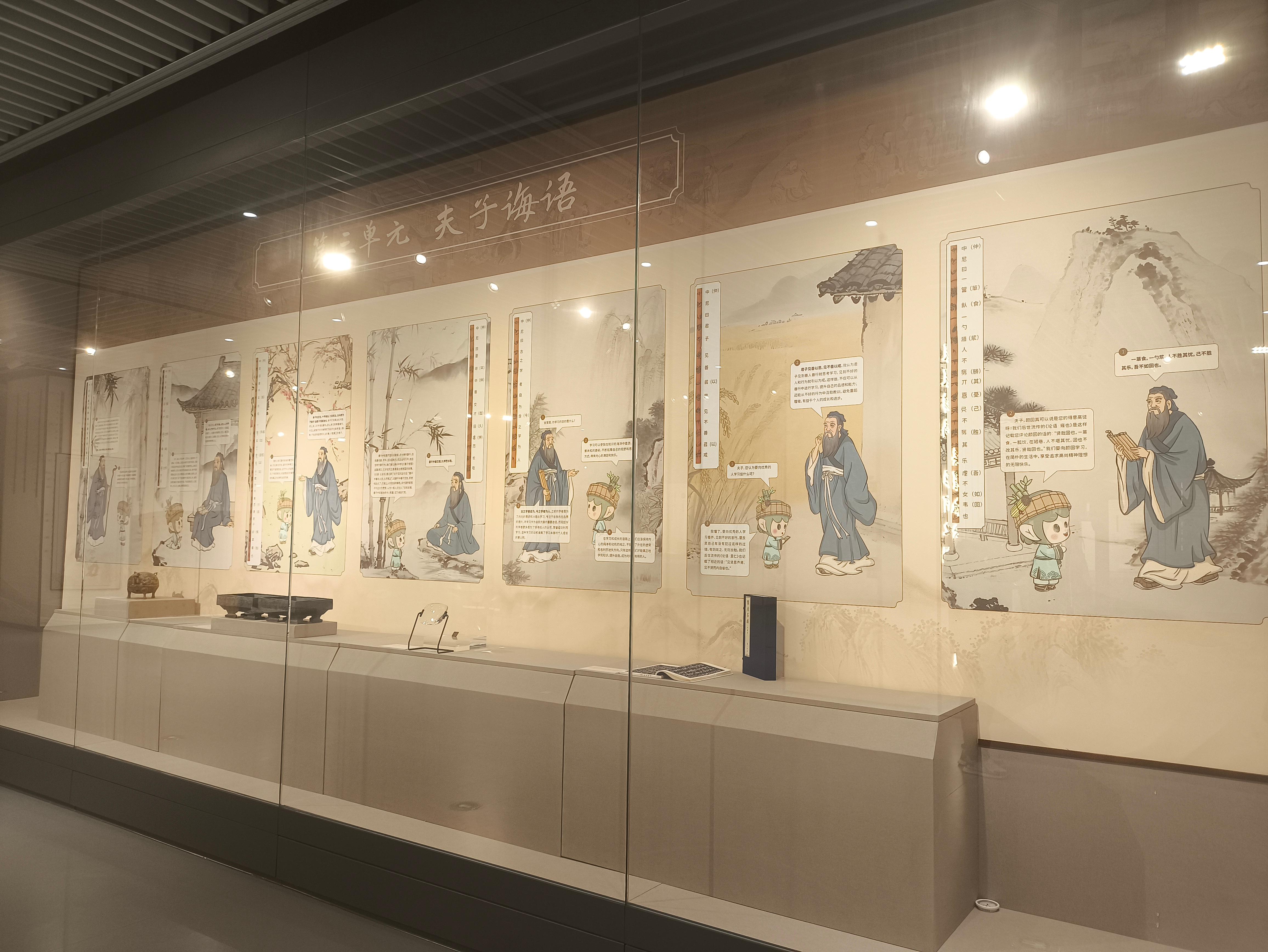 值得注意的是,展览设置了电话亭、竹简体验等多个互动区域,还以漫画的形式展示了孔子语录和涉及《曹刿论战》内容的军事文献,整个展览图文并茂,场景、文创、互动项目精彩纷呈。