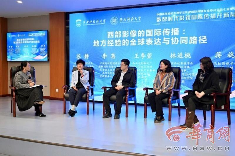 主旨演讲结束后,年会开展了圆桌论坛。中国高校影视学会影视国际传播专委会副秘书长、首都师范大学科德学院人文与社会科学学院常务副院长苏静担任主持,中国高校影视学会影视国际传播专委会常务副主任委员、北京电影学院电影国际传播中心主任李苒,西安电影制片厂有限公司副总经理、西安XR电影产业基地管理办公室副主任王季萱,中国高校影视学会影视国际传播专委会理事、云南大学新闻学院林进桃副教授,中国高校影视学会影视国际传播专委会理事、天津美术学院戏剧影视美术设计系主任蒋旎副教授参与了圆桌论坛,围绕中国影视国际传播交流、跨文化传播经验、作品价值观传递、西部电影的优势以及影视技术的国际探索等内容展开讨论,为西部影像的国际传播路径与跨文化适配策略建言。