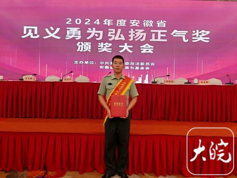 王涛获2024年度“安徽省见义勇为弘扬正气奖”一等奖