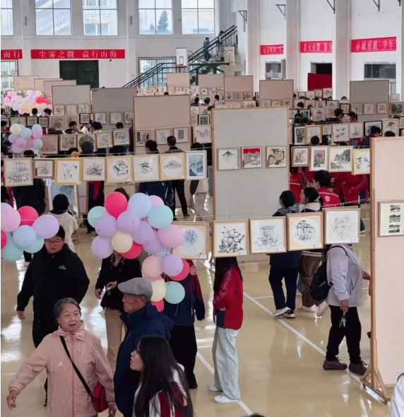 本次展出的作品,不仅是同学们艺术灵感的闪现,更是他们专业技能与升学准备的直观体现。他们的笔触或许尚显青涩,却饱含着对生活的热爱和对自然的礼赞——是山间的晨雾,是田埂的野花,是璀璨的烟火,是流转的光影。那一笔笔色彩、一处处线条,都是少年们用眼睛发现美、用心灵感受美、用双手创造美的真情流露。同学们自发作出决定:将本次画展所有作品的义卖所得,全额捐赠给公益事业。