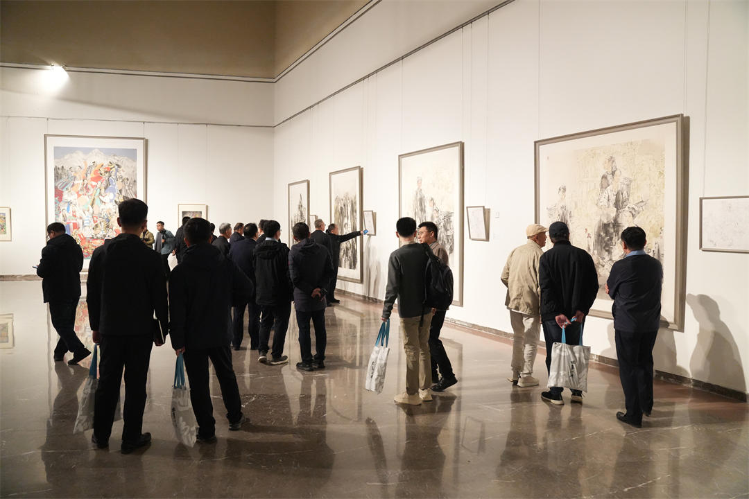 中国国家画院院长、中国美术家协会副主席刘万鸣在致辞中表示,与杨晓刚在艺术道路上有诸多共鸣。他指出,杨晓刚的艺术成长得益于家学渊源、济南深厚的文化滋养、山东前辈艺术家的影响以及学院系统训练,其创作超越客观再现,注重对物象的精神提炼与意境营造。他认为此次展览主题精准概括了杨晓刚的艺术特质——将少数民族生活的质朴、时代楷模的精神与历史题材的厚重,熔铸为具有个人标识的艺术表达,展现出艺术家的人文初心。