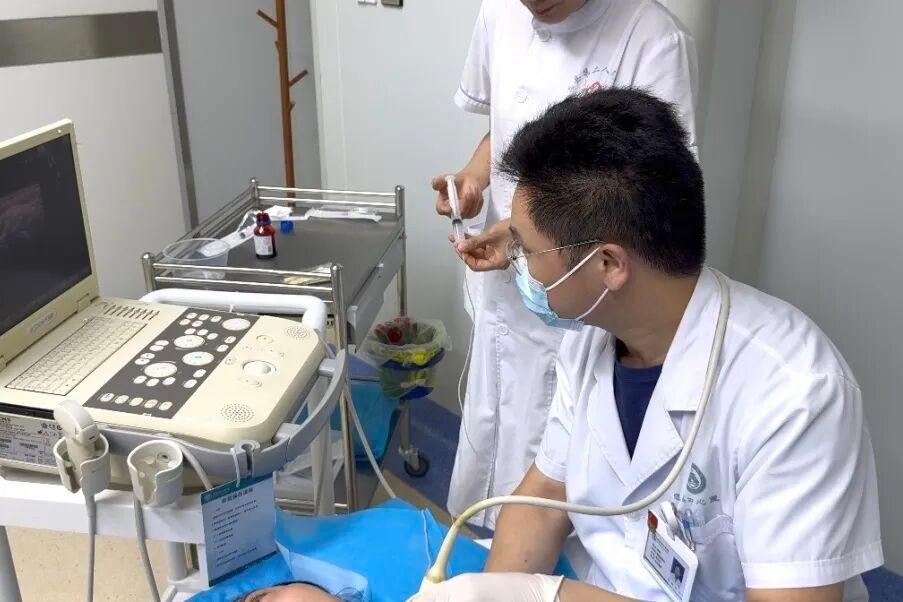 诊疗方案很快精准落地。疼痛科医务人员先为老太太抽出20毫升血性积液,再实施关节腔药物灌注治疗。当天下午,老太太就能扶着床沿慢慢踱步,脸上露出久违的轻松。
