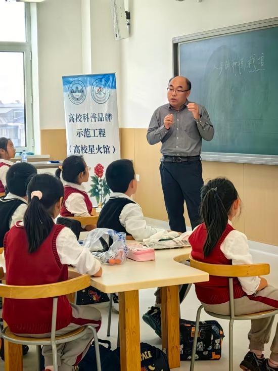 “人参为什么偏爱黑土地?”“野山参和园参有什么区别?”面对孩子们抛出的一个个问题,张瑞以生动的语言一一解答。作为省人参工作专班种植组科技组成员、农工党员,他首次尝试与小学科学教师开展“TT合作”,将高校科研资源转化为适合小学生的实践内容。课堂上,他从人参的生长习性讲到播种育苗技巧,从田间管理延伸至病虫害防治,更带来人参样本、植株标本和人参制品,让孩子们通过观察、触摸、实操,感受中医药文化的博大精深。“高校专家与基础教育课堂的‘破壁’合作,让知识不再停留在课本。”