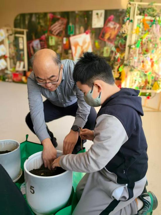 教室里,孩子们分组协作,忙得不亦乐乎。“原来人参移栽要埋这么深!”“我每天都要来看看我的参宝宝!”兴奋的讨论声中,黑土地不再是抽象的概念,而成为连接知识与现实的桥梁。一名学生捧着自己栽种的花盆说:“等我的人参长大了,要送给爷爷泡药酒!”