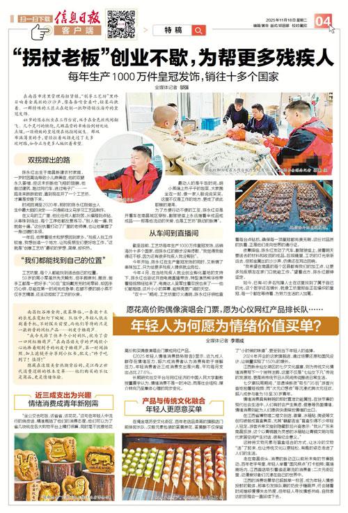 今年4月,在当地残疾人就业创业孵化基地的支持下,陈永红也尝试开启电商直播带货。特型演员熊华栋带着短视频经验来了,电商达人吴军拄着双拐也来了——他们都相信,这片小小的屏幕,能照亮更广阔的天空。