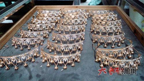 在南昌市湾里管理局招贤镇,“创享工艺坊”里终日响着金属丝的沙沙声,像春蚕啃食桑叶,轻柔而执着。一群特殊的工匠正在赶制一批即将销往海外的皇冠发饰。