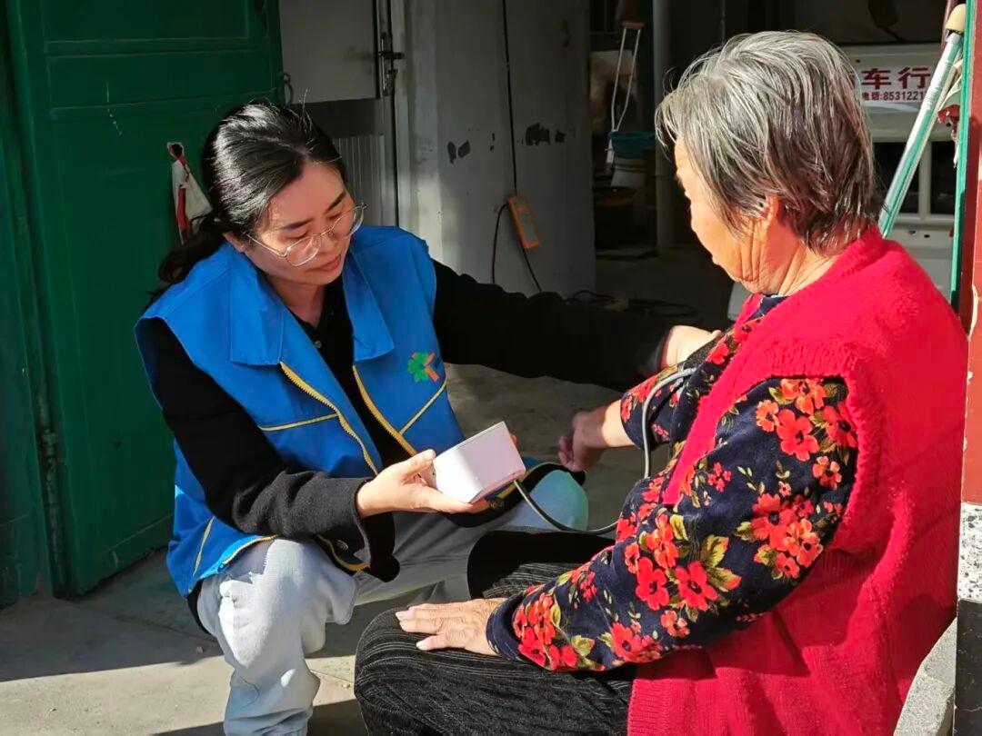 大泽山陈家庄唐大姨家。唐大姨胫骨平台骨折切开复位内固定术后约一个月,孙世山主任仔细检查了她刀口的愈合情况。李护士在测量血压时发现李大姨血压偏高,穆芳杰护士长立即为她进行了细致的饮食指导,并建议她尽快复查。李大姨感激地说:“要不是你们这次来,我都不知道自己的血压已经这么高了!”