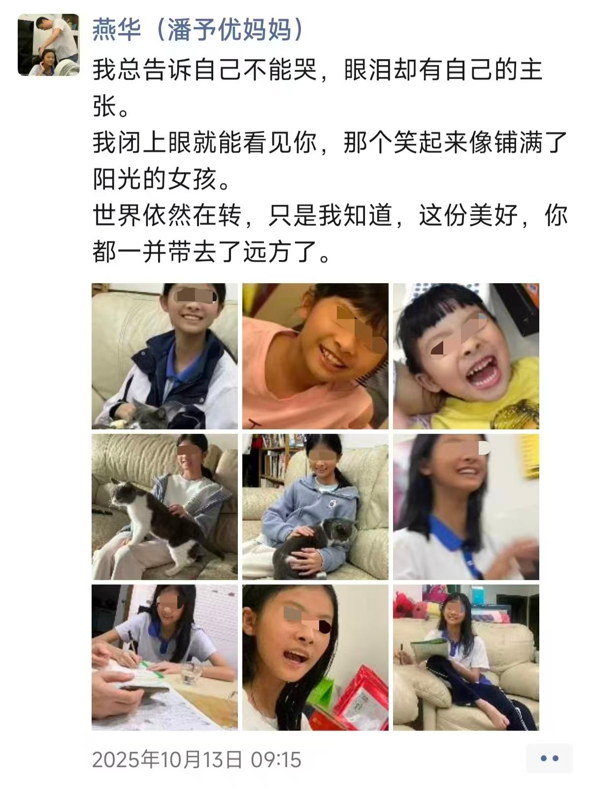 2025年8月16日:“妈妈不想‘走出来’,也走不出来……你房间还是老样子,拖鞋也摆在门口,万一你回家呢?优优,饿了托个梦,冷了说一声,妈妈永远在这儿,永远永远给你暖着手。”