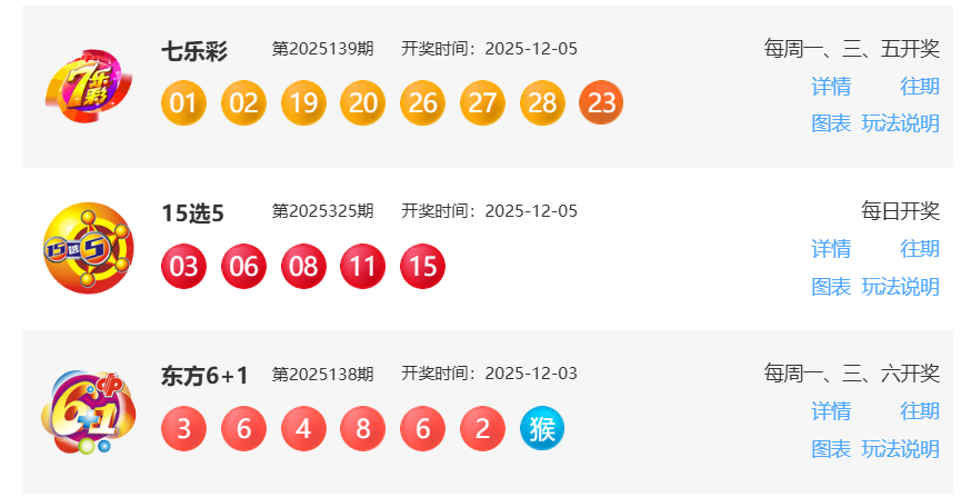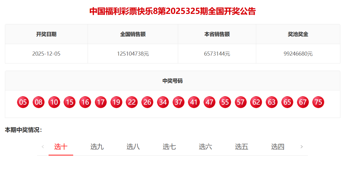 12月5日福彩中奖号码 快乐8、七乐彩各开出一注大奖 头条 2025-12-06 00:07:25 浏览 评论 大皖新闻讯 12月5日晚,安徽福彩网更新了彩票开奖公告。其中,快乐8开出1注“中10”大奖,单注奖金500万元;七乐彩开出1注一等奖,单注奖金1738233.00元。具体如下: 编辑 许大鹏 上一篇: 微视频|解锁滑雪场隐藏bug 摔倒是昂贵的“经验包” 下一篇: 本文地址: http://zx.zpt966033.com/toutiao/1747182.html 版权声明:如无特殊标注,文章均为本站原创,转载时请以链接形式注明文章出处。