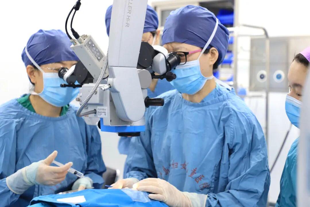 手术室里,挑战正式开始。在显微镜下,鲍永珍教授的操作极其轻柔与精准。她需要小心翼翼地分离那些紧紧粘连的虹膜组织,避免引发更多出血或损伤。在狭小的操作空间里,她成功实施了超声乳化,吸除了混浊晶体,并将一枚崭新的人工晶体稳稳植入预定位置。