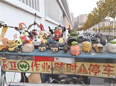 满载玩具的环卫车停在赵伍北路“和睦新村垃圾集置点”内,50岁的郏德轩是垃圾集置点的主管,也是这辆满载玩具的环卫车的主人。郏德轩说,小区里的居民搬家,常会把一些玩具扔掉,他感觉扔掉挺可惜,去年上半年开始收集这些玩具。